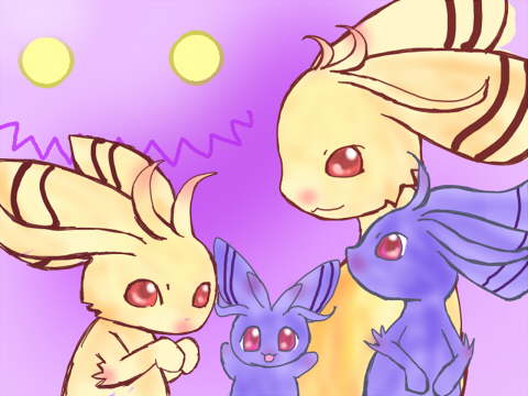 と、色違い(?)の玉兎と玉兎ベビー。と、ピコの進化融合型ピコピコ。